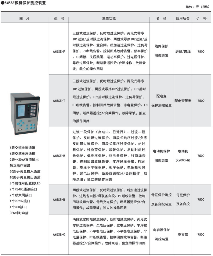 AM系列微機保護測控裝置集保護、測量、控制于一體,適用于35kV及以下電壓等級的用戶終端變電站(所),可實現用戶變電站的保護和測控。