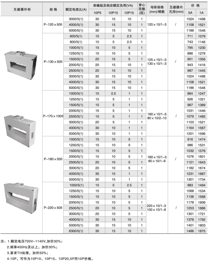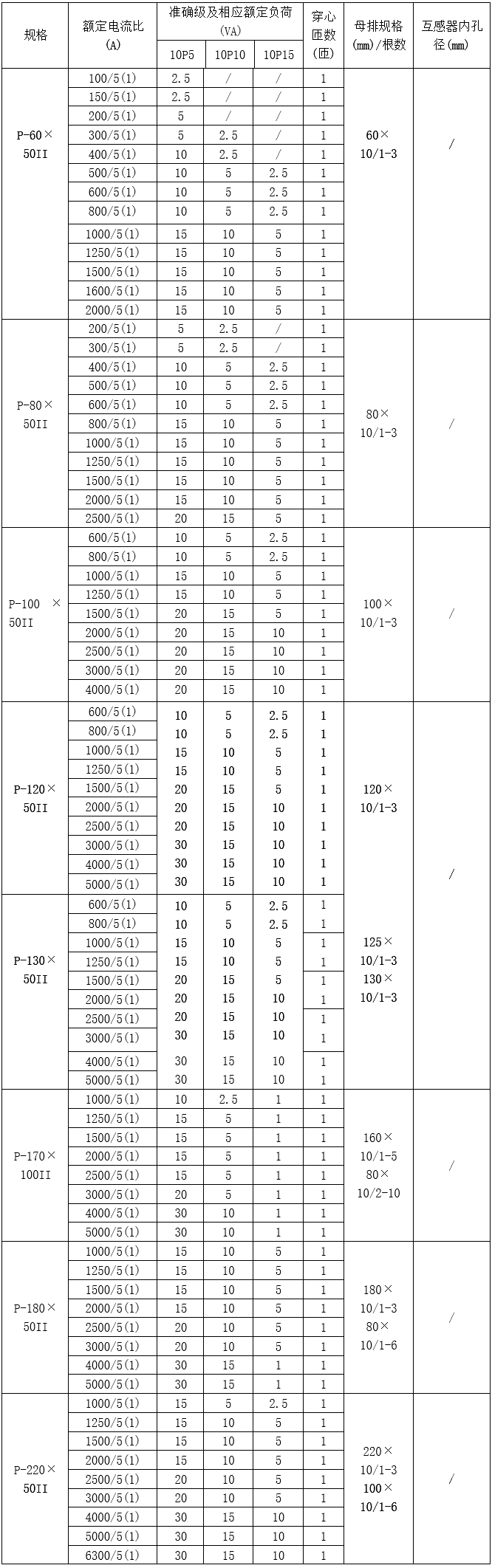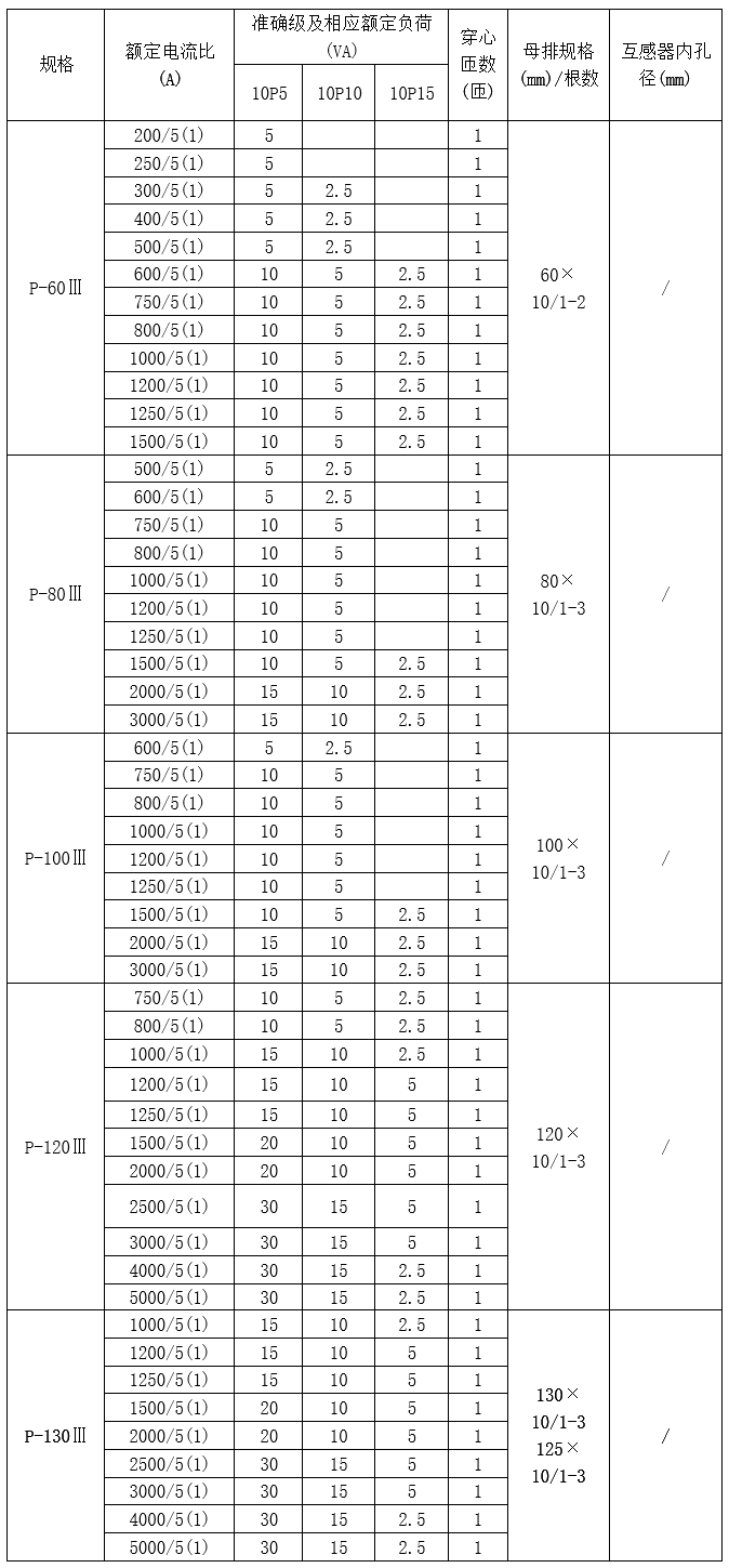 技術要求:額定電流比600A/5A;準確級10P10級;額定負荷5VA;穿心匝數1匝;穿排規格60mm×10mm 1-2根。