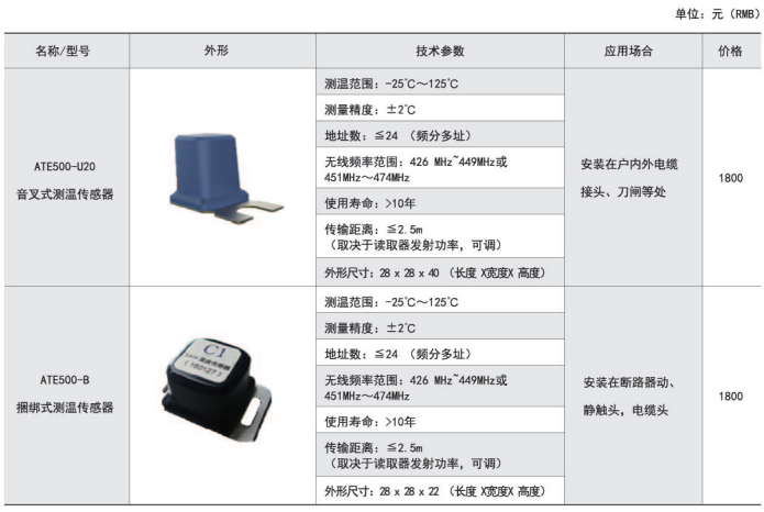 適用于高低壓開關柜內(nèi)電纜接頭、斷路器觸頭、刀閘開關、高壓電纜中間頭、干式變壓器、低壓大電流等設備的溫度監(jiān)測。訂貨范例: