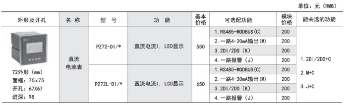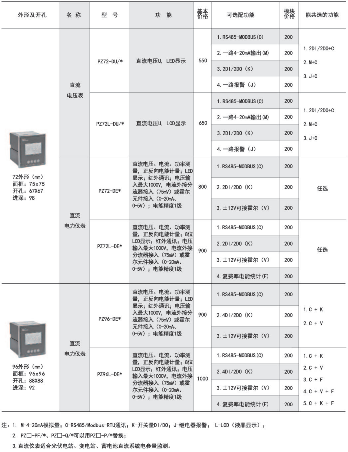 適用于直流屏、太陽能發(fā)電、電信基站等直流系統(tǒng)的電力參數(shù)檢測。訂貨范例:
