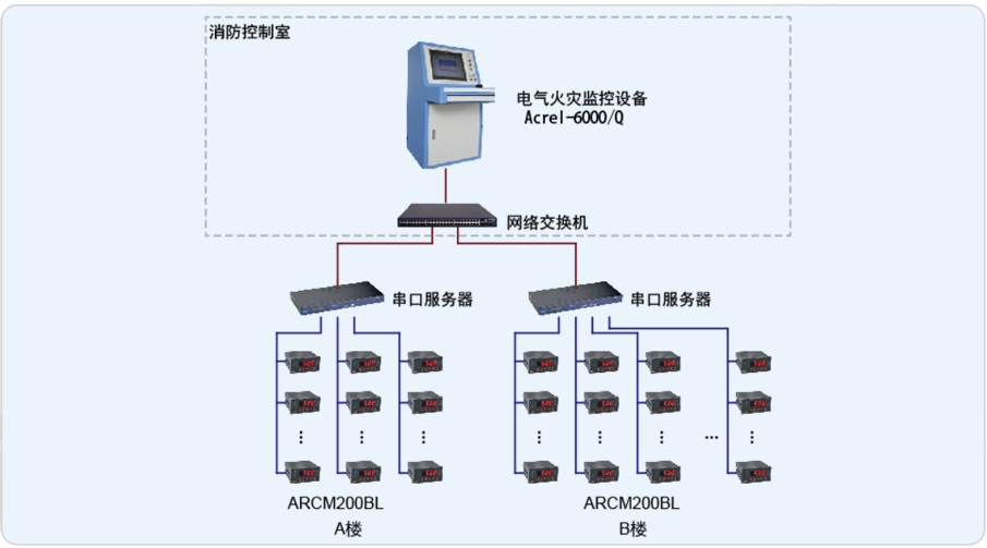該項目中廠區內分布的安科瑞剩余電流式電氣火災監控探測器ARCM200BL,通過RS485總線與2臺監控設備通訊,采用了Acrel-6000/Q系統組態軟件,實現了對被保護電氣線路的安全監視、控制及管理,提高了電氣火災隱患的排查效率,具有集中調度、控制、保護、監視、顯示等功能,集用電安全管理、分析、記錄于一體智能化優點,為公司提供了安全保障。